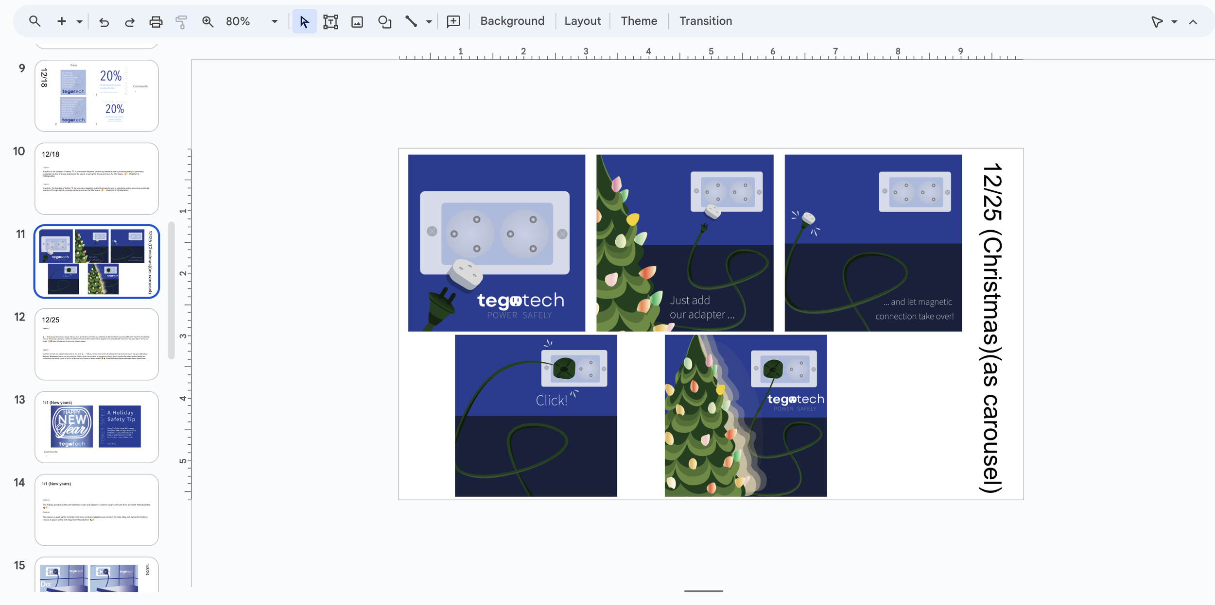 To showcase our product demo comprehensively, the marketing team and I opted for an Instagram carousel post. This allows us to delve deep into the demonstration with a festive twist. Plus, to cater to the more traditional aspect of Christmas, the night light graphic seamlessly transforms into the Christmas tree showcased in our final edit.